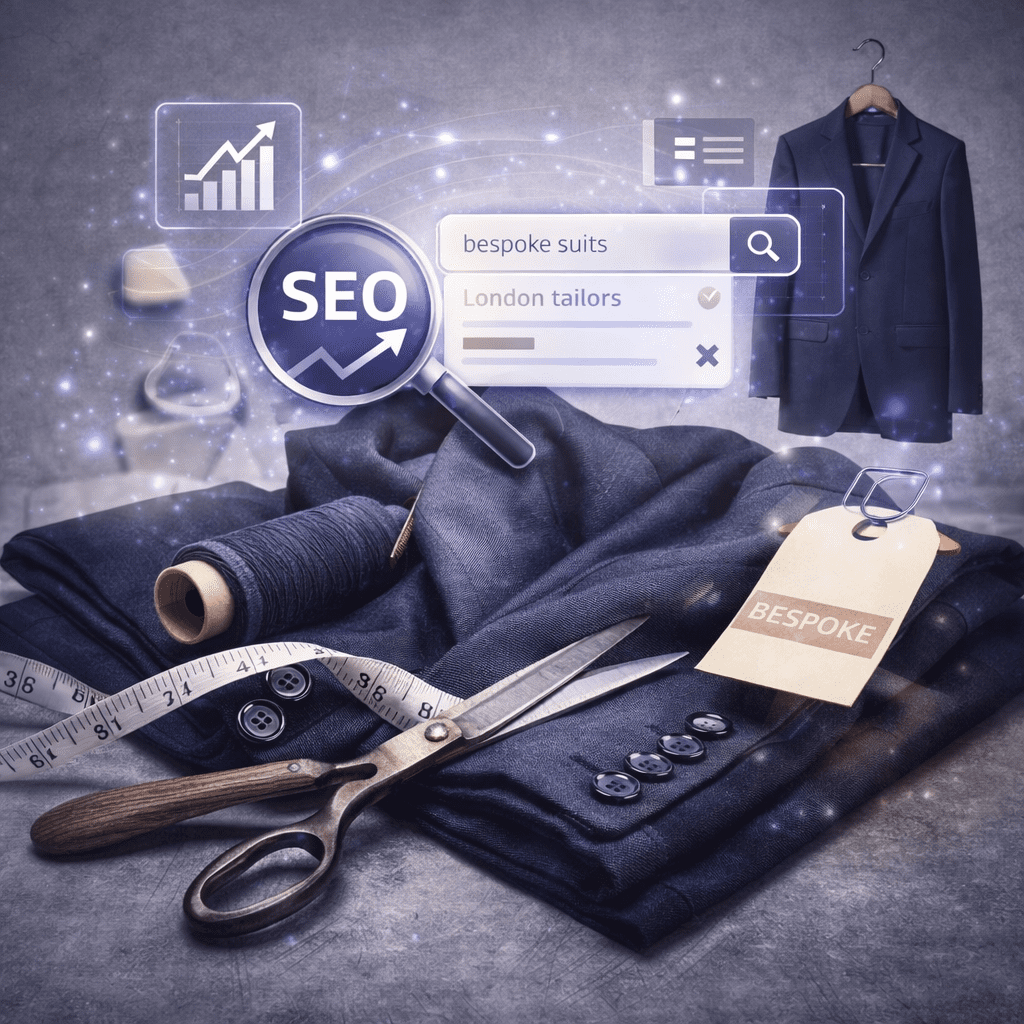 Unlike mass-market services, bespoke tailoring searches are intent-driven and trust-based. Clients search with precision and expectation.
