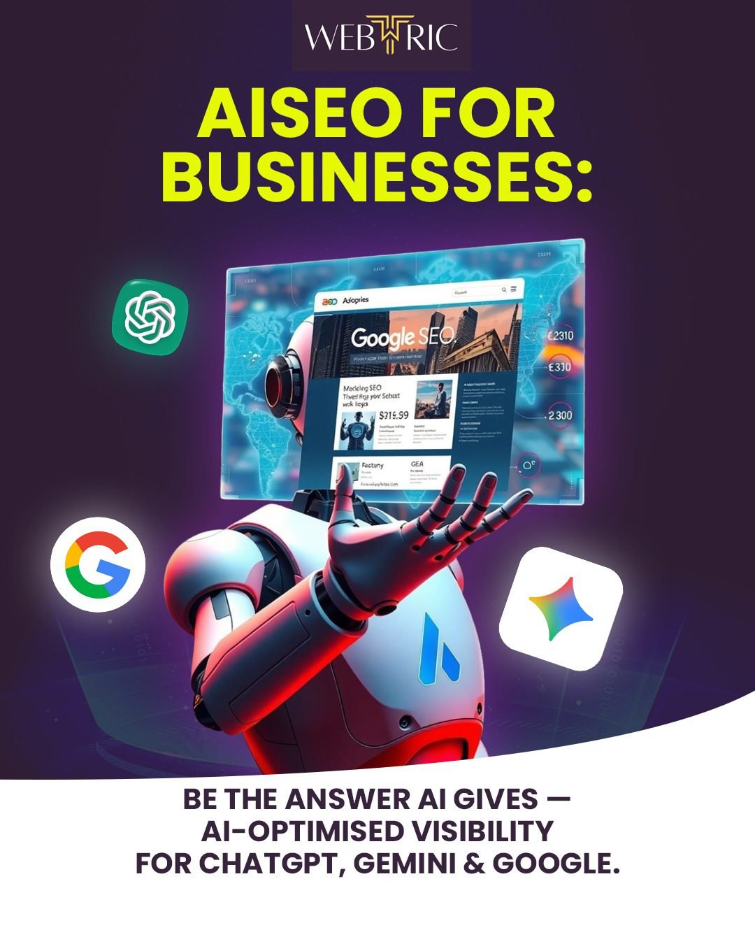 Search is evolving with AI-generated answers, semantic search, and conversational queries. Webtric’s AI SEO services help businesses stay visible across both traditional search results and AI-powered experiences.